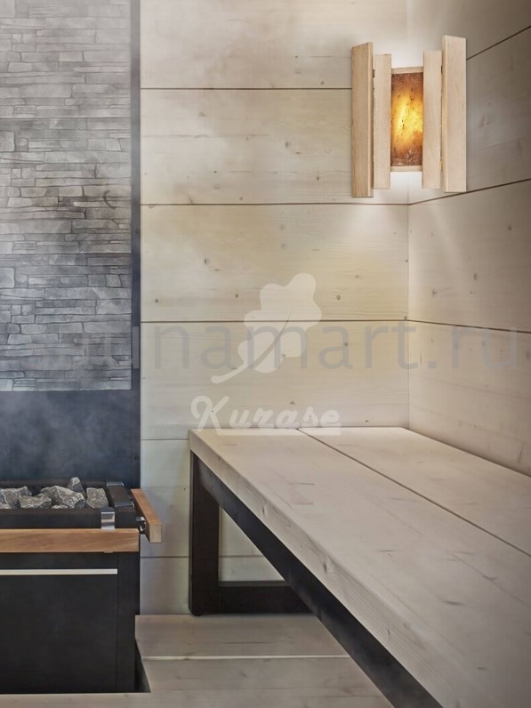 Натуральные материалы, интересный дизайн, приятная фактура древесины и уникальный природный рисунок соли –  сделают абажур главным элементом декора бани, создающим неповторимую атмосферу. Для изготовления абажура используется древесина ольхи премиального качества, а так же декоративная вставка из 100% натуральной гималайской розовой соли, создающая приятный теплый свет. Абажур поможет организовать грамотное освещение:  даст мягкий рассеяный свет непосредственно в парной или комнате для отдыха.  Абажур для светильника оснащен угловым креплением, легко устанавливается на стену и делает освещение в помещении сауны ещё более атмосферным и расслабляющим. При нагревании, вставка в абажуре из гималайской соли ионизирует воздух, что дает оздоровительный эффект, улучшает иммунитет и благотворно влияет на воздух в помещении. Размер изделия: 34,5х30,5х9 см, размер вставки из гималайской розовой соли 19,5х10х2,5 см.