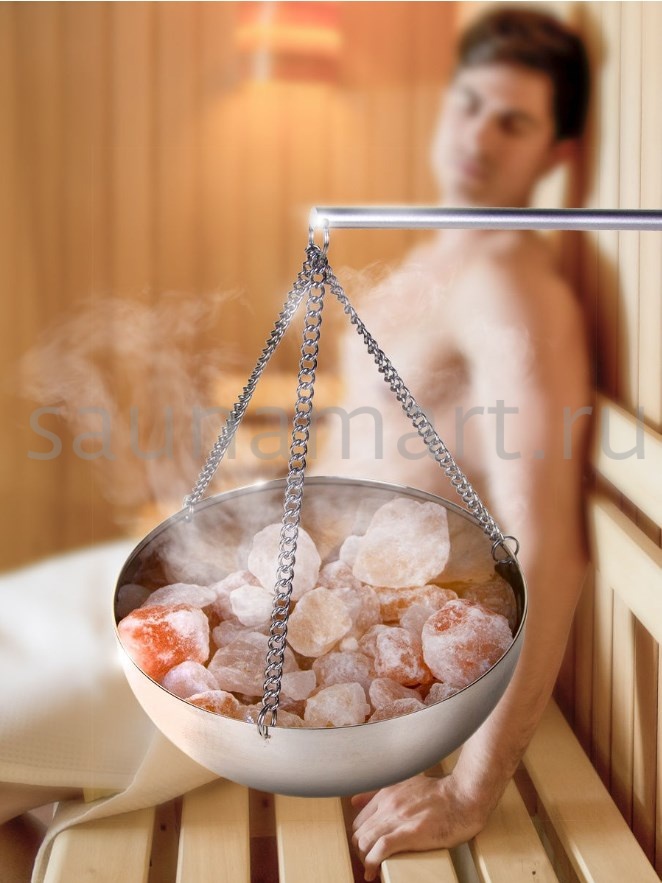 Она заполняется солью или различными ароматическими компонентами (травами, эфирными маслами, разведенными в воде) и подвешивается на специальное крепление к стене над раскаленными камнями печи или к потолку.