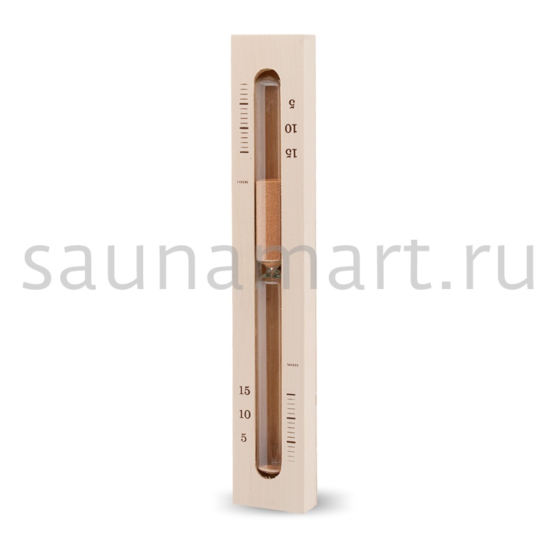Закрытая стеклянная колба, шкала делений по минутам. Шкала 5-10-15 мин.