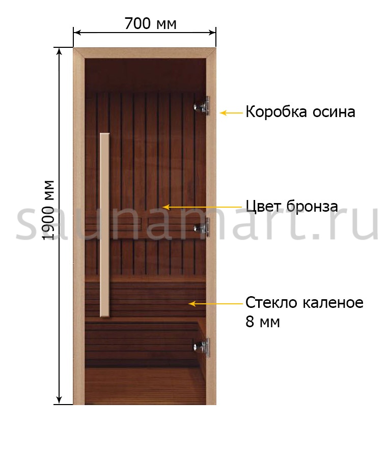 Дверь для сауны Экодорс 1900х700 (бронза осина) ручка длинная