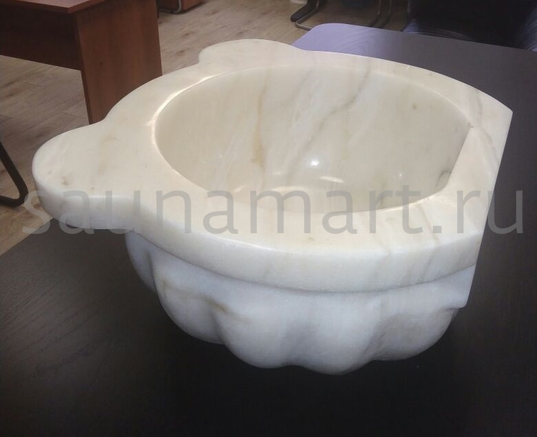Курна – элемент интерьера турецкой бани, она используется для омовения. В курну без слива вода поступает напрямую из смесителя и изящно выливается через край. Мраморная чаша устойчива в условиях повышенной влажности, а это значит, что она прослужит Вам долгие годы. Курна Камнирус КМ10 имеет утончённую округлую форму и удобные выступы по краям. Она устанавливается вплотную к стене. Такая деталь сможет создать особую этническую обстановку и прекрасный микроклимат в Вашем хамаме.