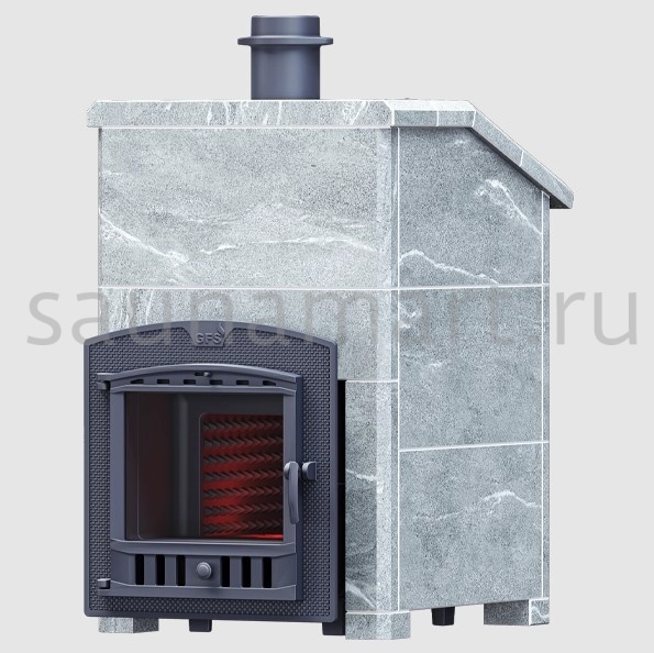 Талькохлорит – самый распространённый и широко известный камень, применяемый для облицовок печей и отделок парных помещений. Место добычи – Карелия. Используются слебы только из нижних горизонтов, которые обладают высоким качеством камня.