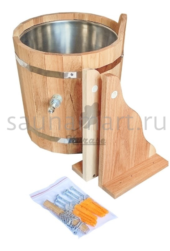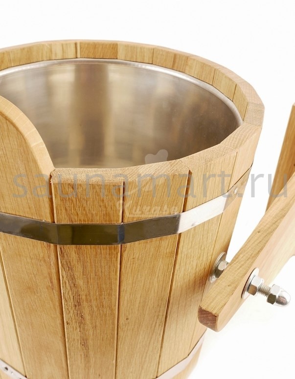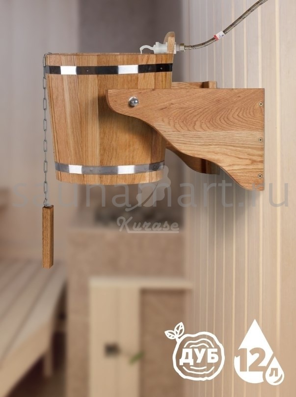 Обливное устройство  для бани и сауны. Объем 12 литров. Материал изготовления - древесина дуба. Внутренняя вставка из нержавеющей стали предотвращает появление грибка и ржавчины.