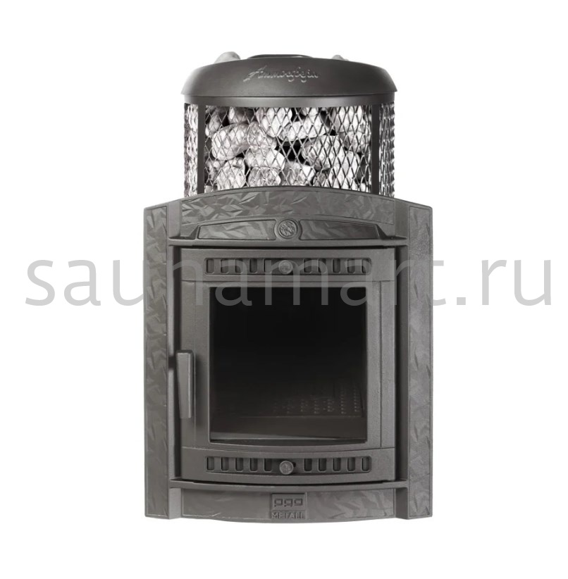 Модель с комбинированной облицовкой из нержавеющей сетки и ламелей. Особенность модели - открывающаяся дверь с ламелями. Это оригинальное решение обеспечивает быстрый прогрев парной.