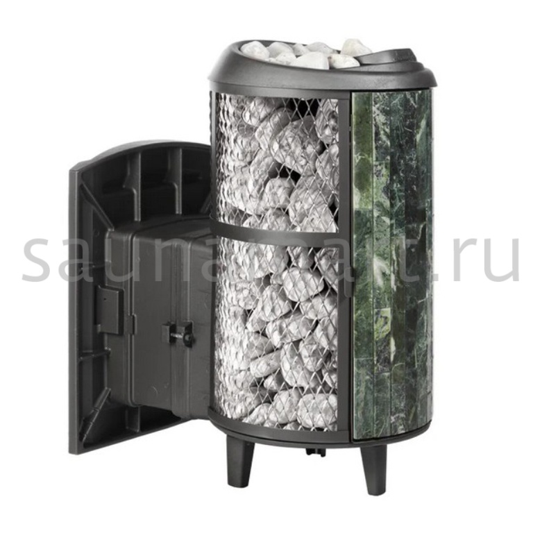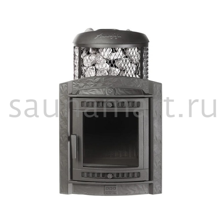 Модель с комбинированной облицовкой из нержавеющей сетки и ламелей. Особенность модели - открывающаяся дверь с ламелями. Это оригинальное решение обеспечивает быстрый прогрев парной.