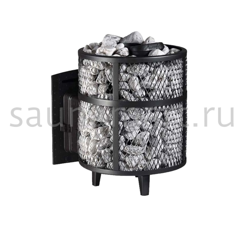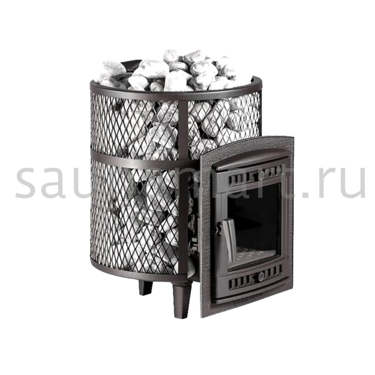 Ультра компактная модель банной печи. Кожух печи изготовлен в виде сетки из нержавеющей стали и полностью заполняется природными камнями, обеспечивая высокую динамику нагрева парильного помещения.