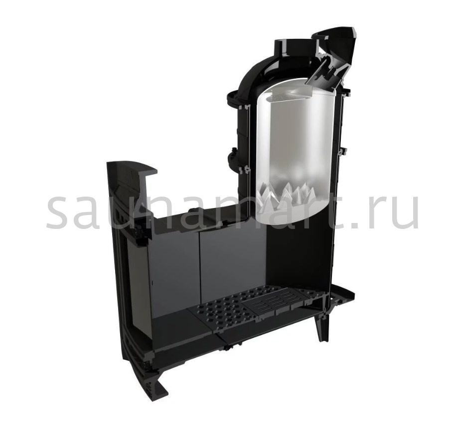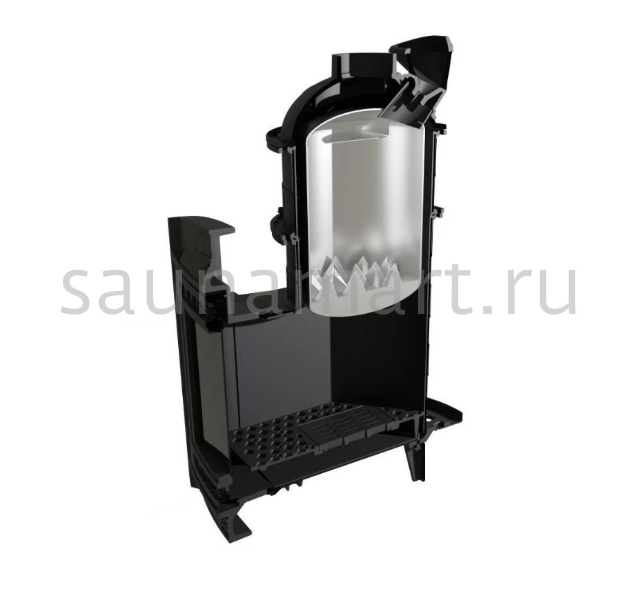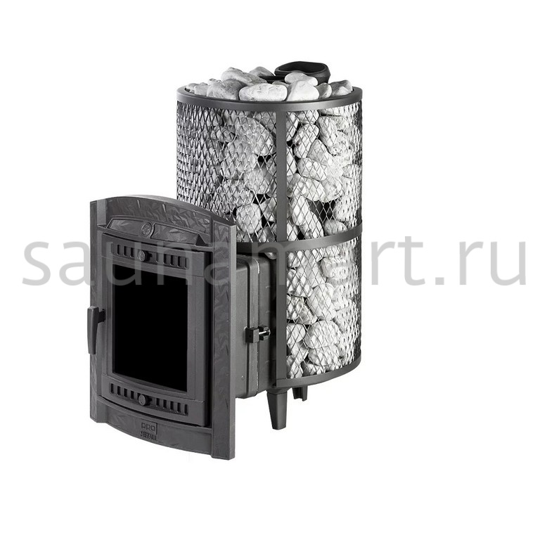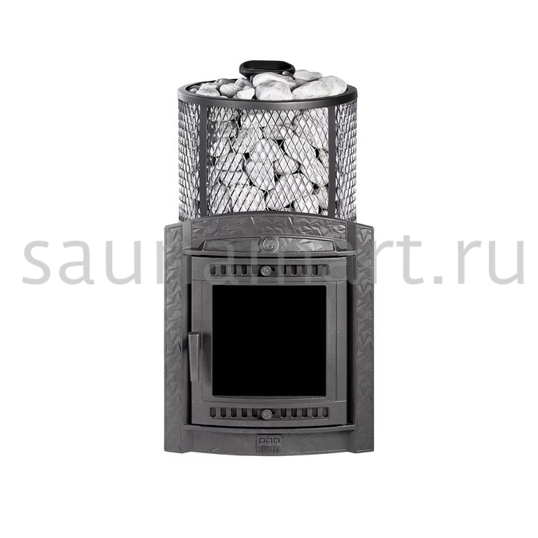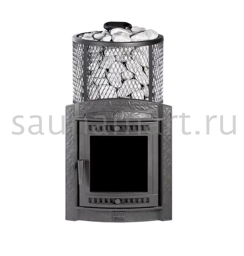 Модель с увеличенной каменкой и повышенной производительностью. Кожух печи выполнен в виде сетки из нержавеющей стали и полностью заполняется природными камнями, что обеспечивает высокую динамику нагрева парильного помещения.