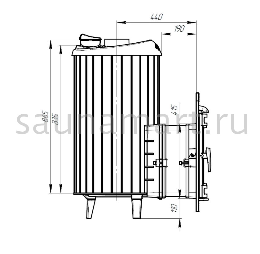 Модель с увеличенной каменкой и повышенной производительностью. Ламели по периметру внешней каменки не только обладают хорошими теплонакопительными свойствами, но и придают печи оригинальный внешний вид.