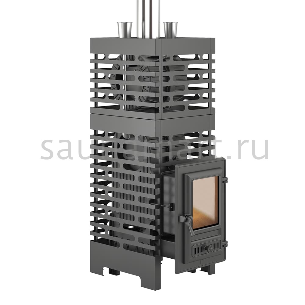 Внешний парообразующий контур представлен сеткой-конвектором, в которую размещается до 120 кг камней для бани. Сетка изготовлена из стали, выполнена в дизайне Астон и окрашена термостойкой краской.