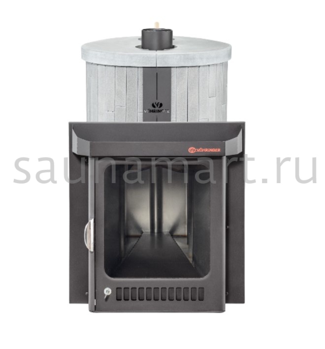 Печи VOHRINGER с дровяной каменкой, у которой вся топка окружена большой массой камней, сильно разогревается, а дров уходит немного, благодаря полному сжиганию дымовых газов с помощью бокового и верхнего горения. Использование эффекта «Vortex», позволяет извлечь всю энергию и направить её на нагрев большого количества камней.