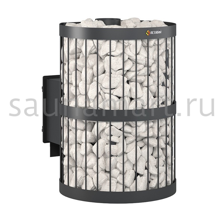 Воздух в зону горения подаётся через поддувало, его количество регулируется зольным ящиком совкового типа. Открытый зольник усиливает горение, закрытый – замедляет его. Чугунный пламегаситель перенаправляет поток горячего воздуха и дымовых газов к задней части топки. Это позволяет снять с печи максимум энергии в единицу времени. Чугунная дверь при нагревании не деформируется, сохраняет свою форму при остывании и предотвращает попадание продуктов горения на пол перед топкой. Печи Везувий СКИФ оснащаются сетками для камней. Сетки могут быть сделаны из металлического прутка или кованой стальной ленты шириной 40 мм. В сетки по всей высоте укладываются камни для бани, обеспечивая большой объём заклада и длительное удержание тепла после прогрева каменки.