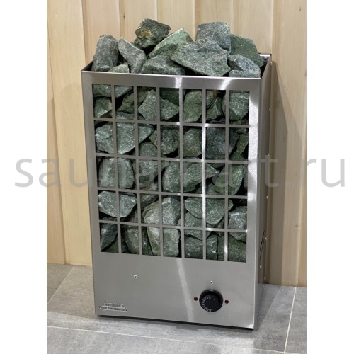 - мощность 7 кВт - работает от 220/380В - настенное/напольное размещение - объем бани 7 - 11 м3 - 3ТЭНа из нержавеющей стали - регулировка температуры воздуха в парилке от 40-120 градусов (встроенный пульт) - масса вмещаемых камней (рекомендованная) 50 - 60 кг (камень Жадеит фракция 4-7 см, в наличии) Материал изготовления ТЭНов (нагревательных элементов) - нержавеющая сталь, средний срок работы тэнов - 10 000 часов, расположенных вертикально по всей камере, обкладываются вокруг камнем и сверху создается "горка" из камней. Материал изготовления корпуса - нержавеющая сталь. ПАРОВАЯ ПУШКА (пароиспаритель) и КАМЕНЬ ЖАДЕИТ приобретается отдельно! Листовой металл. Регулируемые опоры до 20 мм. Настенное или напольное размещение электрокаменки. Внутри электропечи размещен термостат, с рукояткой для управления температуры в сауне (температурный датчик выносится и подвешивается в парильне, регулирует именно температуру в сауне, а не температуру в каменке, что исключает раннее отключение нагрева при не достижении нужного температурного режима в парилке). Открытая конструкция с высокой загрузкой камня (дает возможность согреваться от камня, получая мягкое тепло), НАДЕЖНАЯ КОНСТРУКЦИЯ (хорошая циркуляция воздуха между тэнами и высокая теплоотдача каменки вперед и наверх) и при желании, можно подливать воду (в разумных пределах) на разогретые камни! Высокий объем загрузки камней в нашу каменку 50- 60 кг дает возможность получать больше мягкого и приятного тепла в парилке !!! Гарантия от производителя - 12 месяцев. Производство: Россия, Челябинская область, г. Челябинск Размеры: 39 см (ш) х 22 см (25 см с креплениями) х 60 см (В) Вес: 15 кг