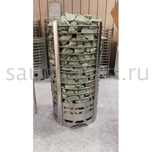 Комплектация: встроенный механический терморегулятор. ТЭНы выполнены из нержавеющей стали. Вариант размещения — напольный, требует негорючего основания. Каменка открытого типа с фронтальной загрузкой. Парообразование — ручное (полив камней через дверцу). Оснащена базовой защитой от перегрева.
