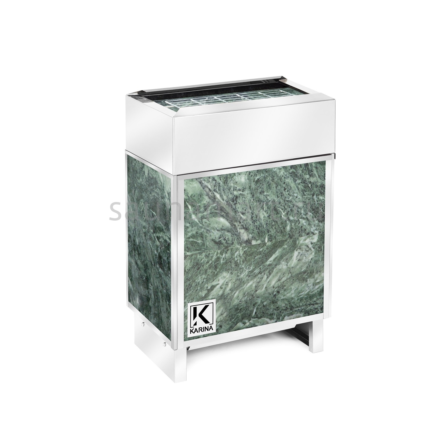 Электрическая каменка в облицовке из змеевика обладает повышенной прочностью и увеличивает полезные свойства банных процедур. Змеевик оказывает положительное влияние на мужскую потенцию, способствует повышению настроения и снижает риск вирусных заболеваний. Кроме того, камень нормализует давление и укрепляет иммунитет.