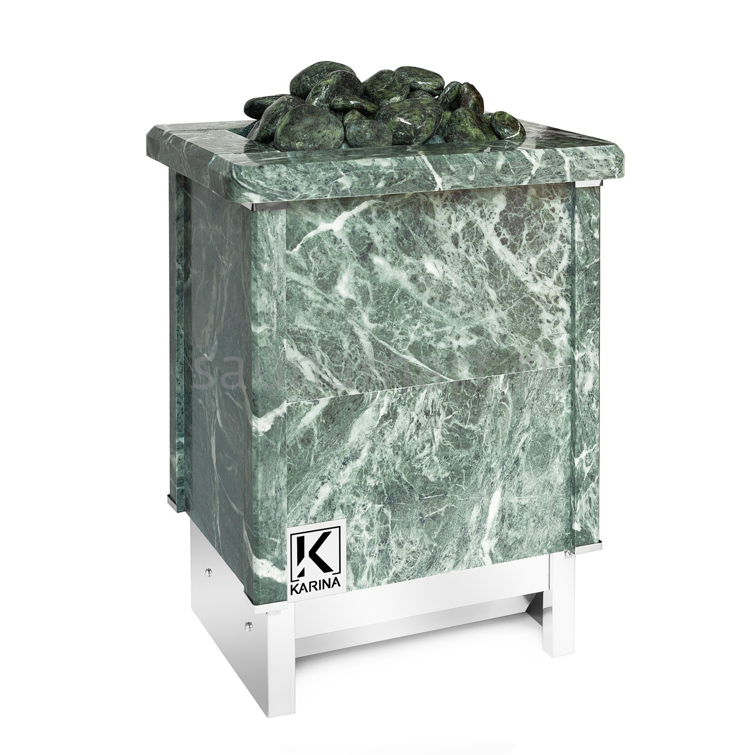Электрическая печь KARINA Quadro 6 Змеевик представляет собой электрокаменку, полностью облицованную натуральным камнем, и способной прогреть небольшие бани и сауны объемом до 7м3.