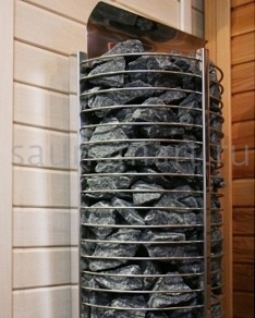 Слегка приплюснутый дизайн. Стоит в среднем ценовом сегменте, качественно прогревает помещение. Есть возможность загружать не слишком большие камни, так как прутья довольно-таки мелкие и не пропускают. Мощность – 6 кВт, на 8 квадратов идеально на средней температуре. Думаю, справится и с банькой пообъемнее.