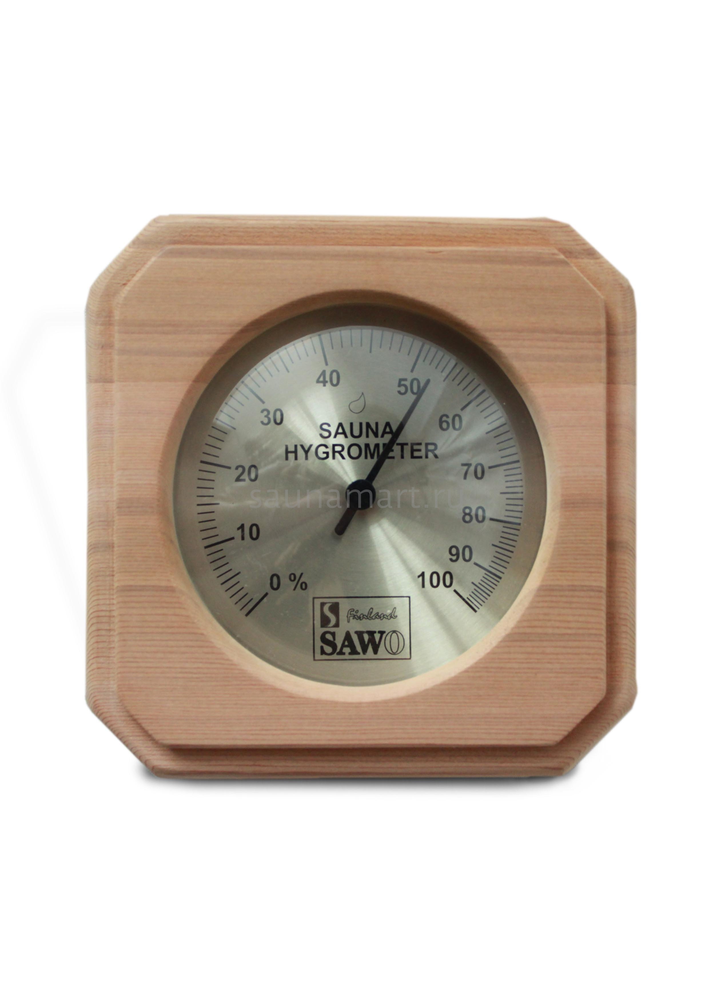 Гигрометр Sawo – необходимый прибор для измерения относительной влажности воздуха в сауне. Вас непременно порадует качество и дизайн прибора. Лучшим местом для установки прибора является наиболее удалённая стена от входа и печи. Укреплять его следует на высоте 1,5м от пола.
