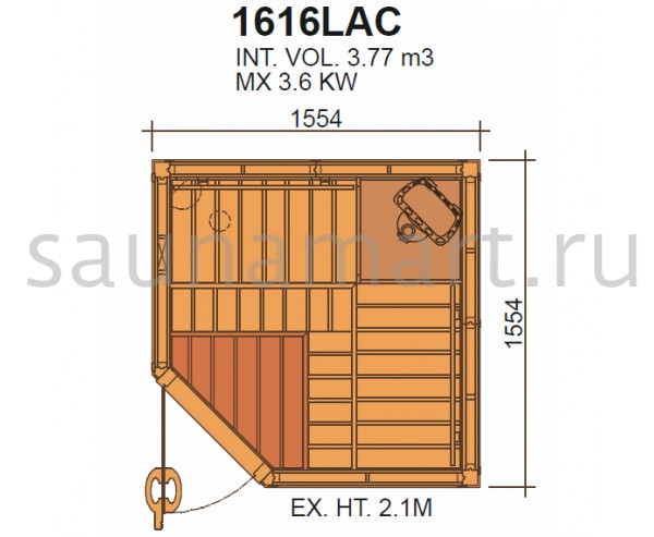 Сауна в сборе SAWO 1616LAC имеет следующие особенности: