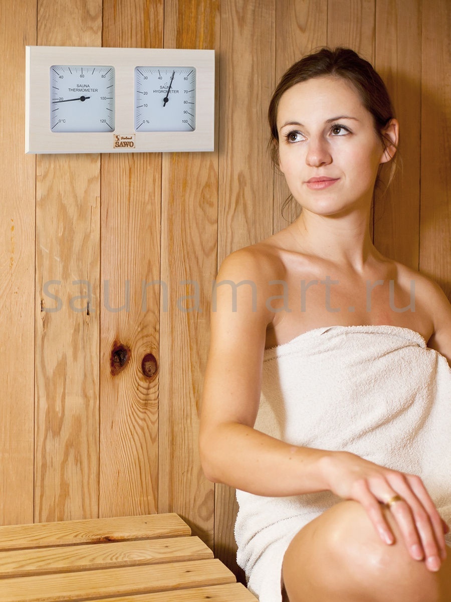 Термометр-гигрометр Sawo является незаменимым устройством для контроля значений температуры и влажности воздуха в парной комнате. Он обладает непревзойдённым качеством и украсит любую баню или сауну. Рекомендуется устанавливать на дальней стене от двери и печи на высоте около 1.5 м.