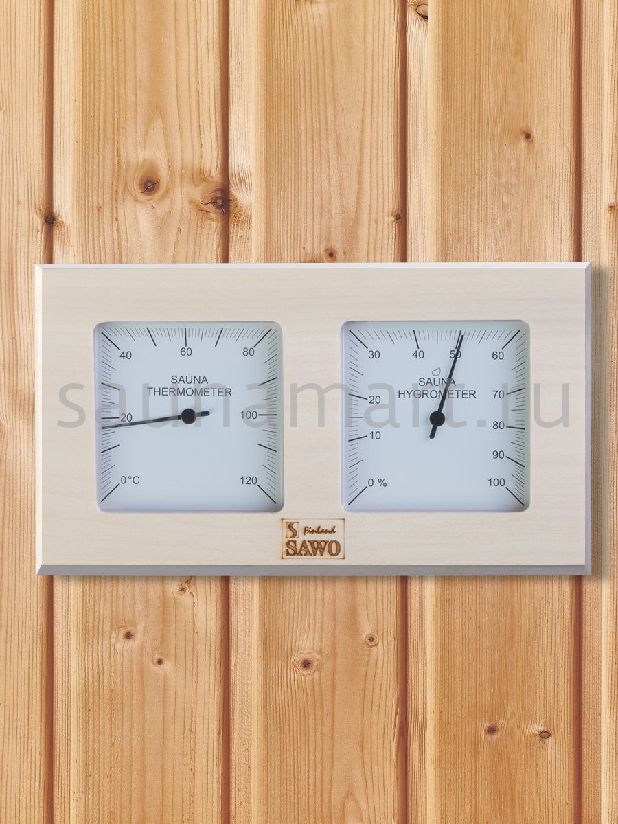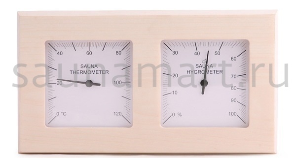 Термогигрометр SAWO  224-THA отличается надежностью, долговечностью и практичностью. Корпус прибора выполнен из осины, очень прочного материала, который не выделяет смолу и не впитывает влагу. В широкой раме из осины находятся два круглых циферблата под термостойким стеклом. Градуировка шкалы гигрометра варьируется в пределах от 0 до 100 %. Градуировка шкалы термометра варьируется в пределах от 0 до 120 градусов по Цельсию. Предусмотрена возможность калибровки прибора. Термогигрометр SAWO прекрасно впишется в интерьер любой бани или сауны и удачно дополнит интерьер. Термогигрометр Саво подойдет для использования в любом парильном помещении, как в условиях русской бани, финской сауны так и хамама. Помните, чтобы проведённое в парной время оказало благоприятный эффект на здоровье и самочувствие, необходимо тщательно соблюдать температурный режим парения и режим влажности.Высокий стандарт качества SAWO гарантирует надёжность и точность измерений термо-гигрометра.