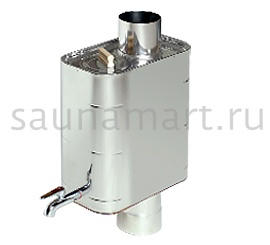 Модель для установки на трубу Резервуар для воды устанавливаемой на трубу модели (22 л) монтируется прямо на каменку. Вода быстро нагревается, поскольку проходящая через резервуар труба функционирует как дымовая труба. Подходит ко всем дровяным каменкам Harvia, кроме Harvia 50.