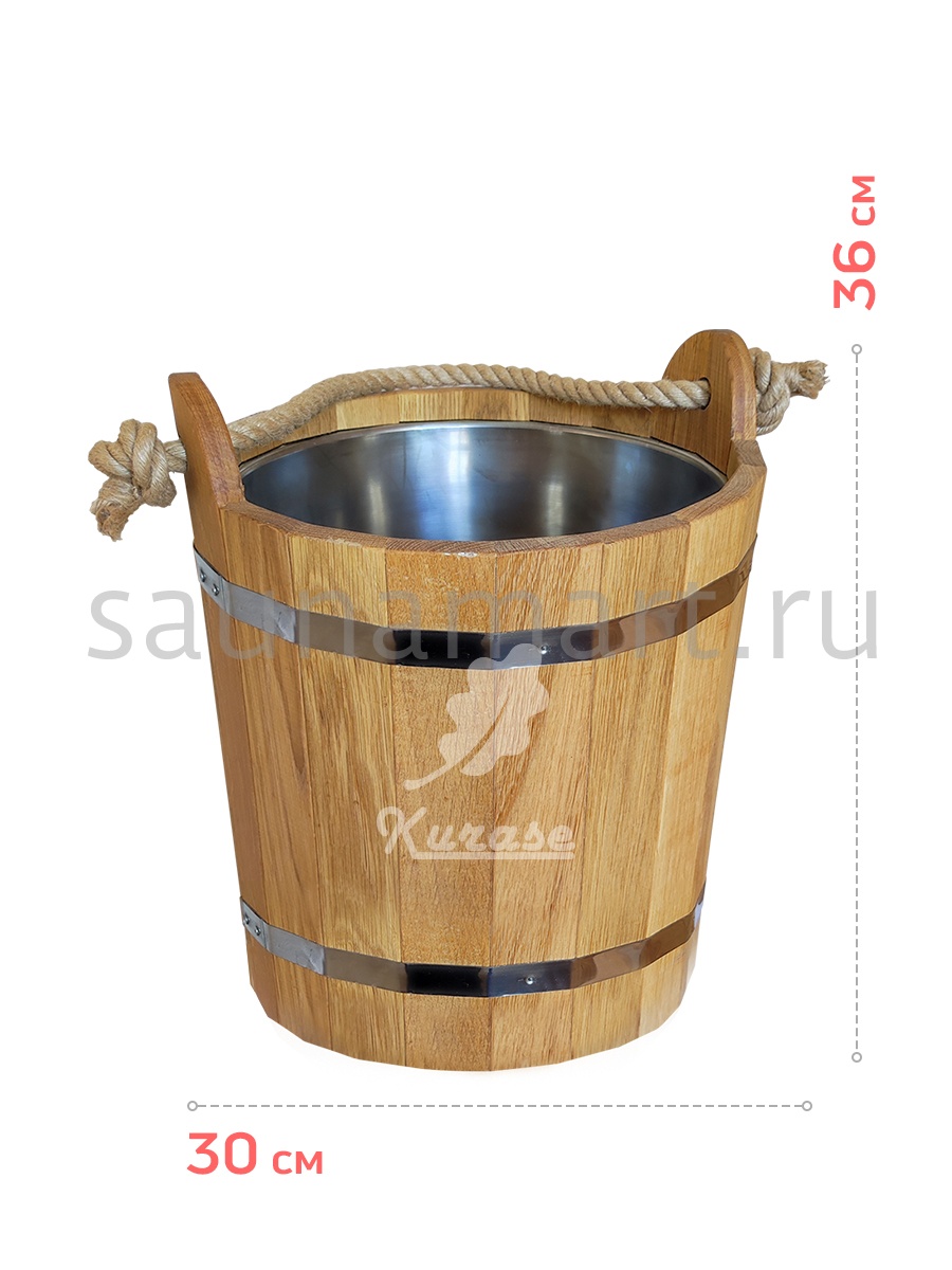 Отлично подходит для хранения и переноски воды, настоя трав, запарки веников. Вставка из пластика обеспечит удобный уход. Ведро оснащено удобной ручкой из толстой бечевы. Наружная часть изделия обрамлена металлическими обручами для надежности конструкции.