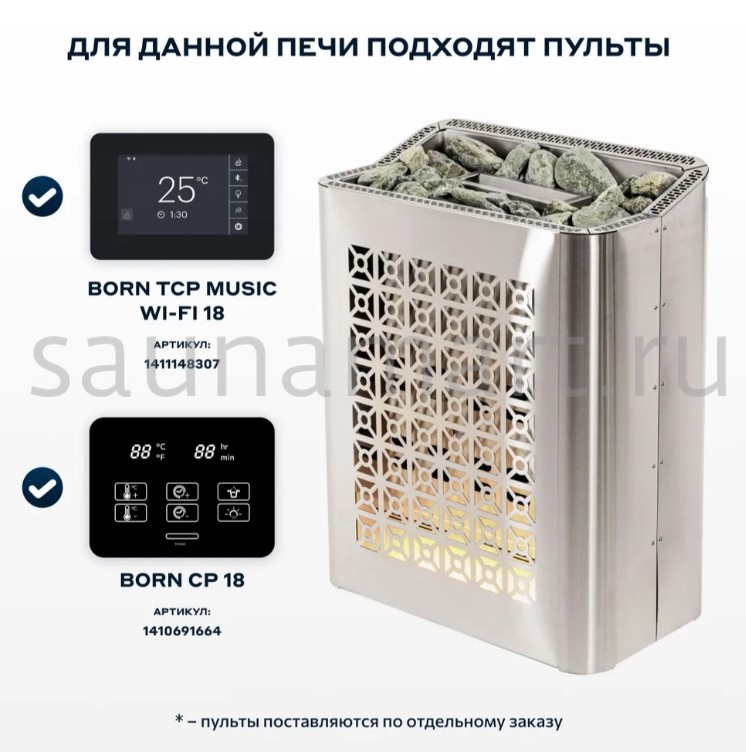 Настенная модель BORN Fire для саун средних размеров. Яркий дизайн каменки притягивает взгляд. Это современная и надежная электрическая печь, отличающаяся продуманной конструкцией и высоким качеством материалов. Корпус каменки выполнен из нержавеющей стали AISI 304.