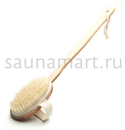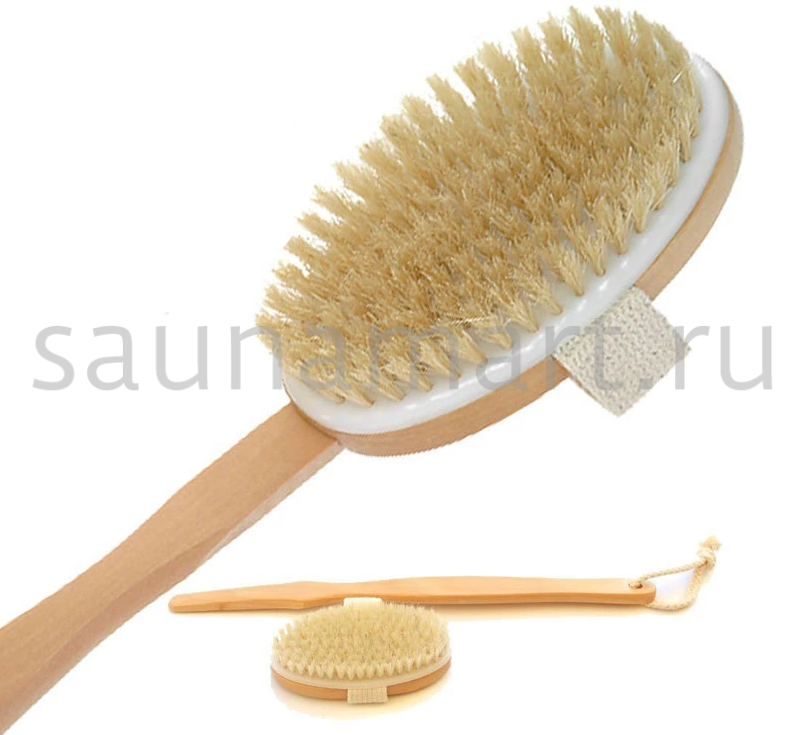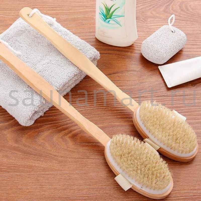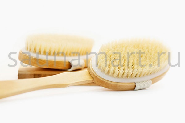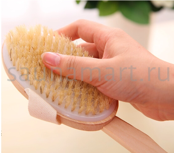Щетка для сухого массажа и душа с удобной ручкой обеспечивает интенсивное обновление кожи и стимулирует микроциркуляцию.